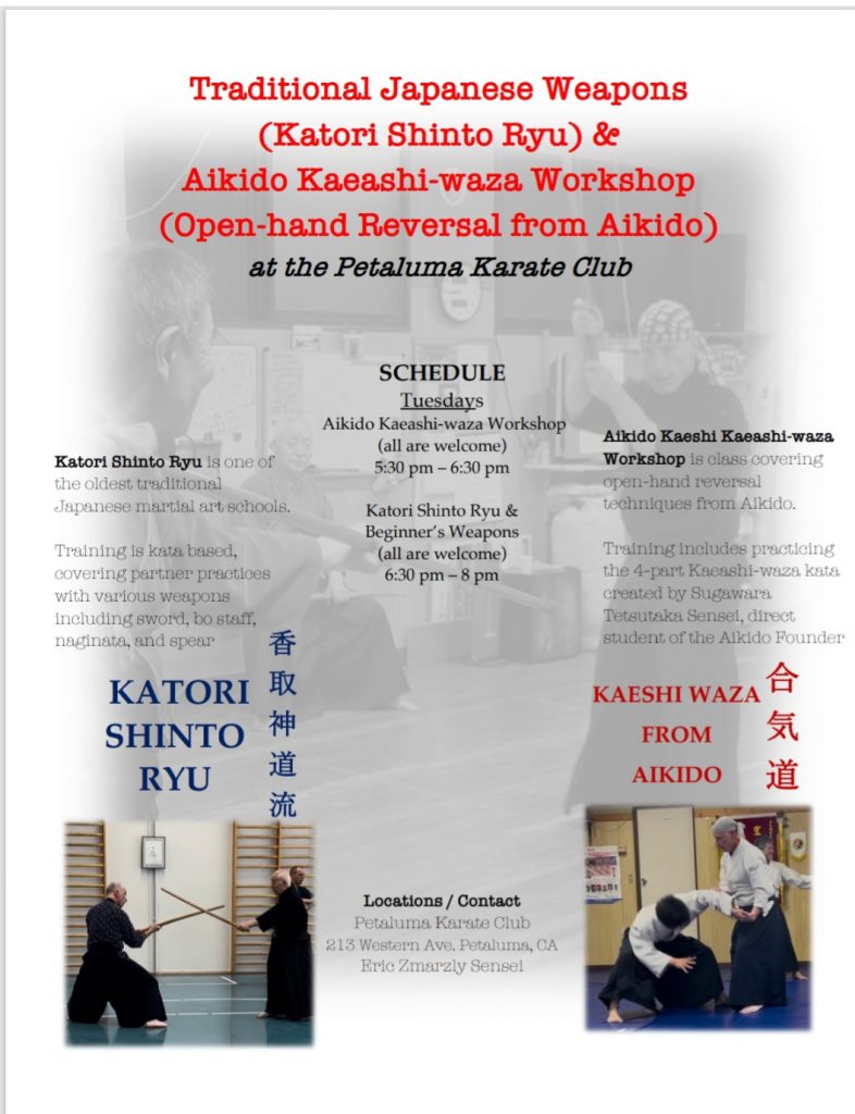 Traditional Japanese Weapons (Katori Shinto Ryu) & Aikido Kaeashi-waza Workshop (Open-hand Reversal from Aikido)